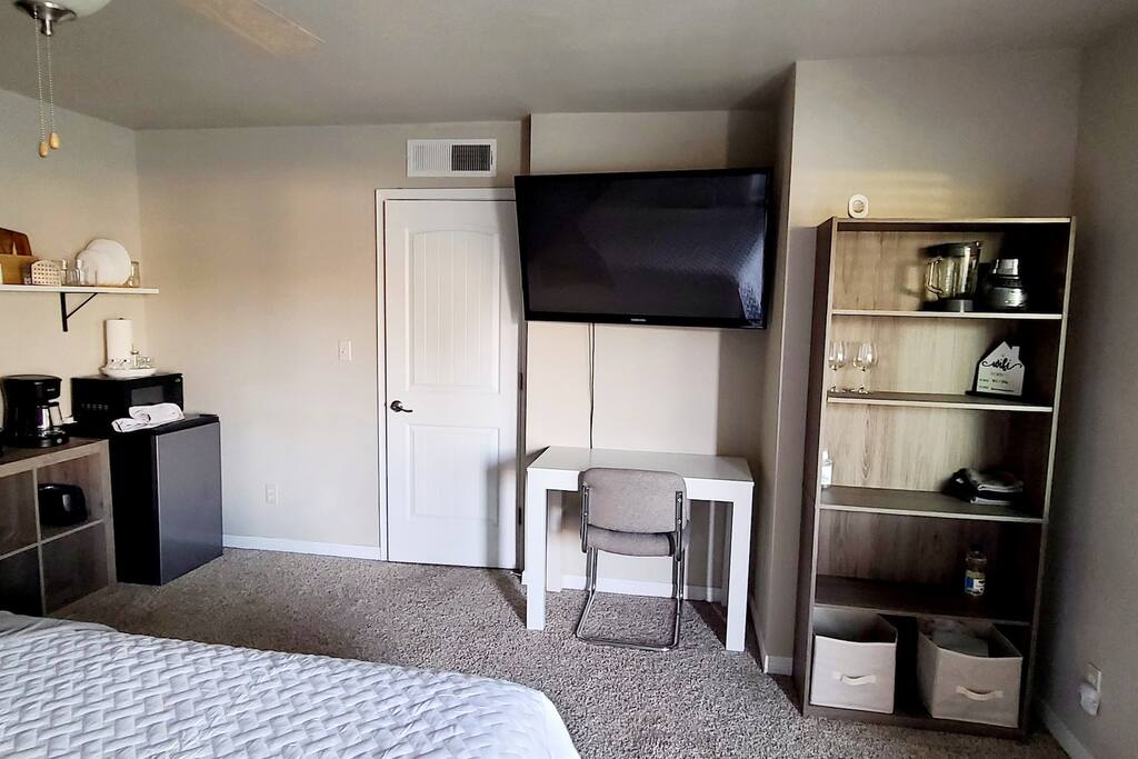 Our modern studio, covers everything you need to have a great confortable stay. From a King size bed, to a smart tv, heating and cooling unit, large restroom and closet, an outdoor fireplace & bbq grill. From arrival to departure you're guaranteed a great comfortable experience during your stay! It's also located: 12 mins from the Airport 13 mins from Fort Bliss 11 mins from both major malls 4 mins from Target